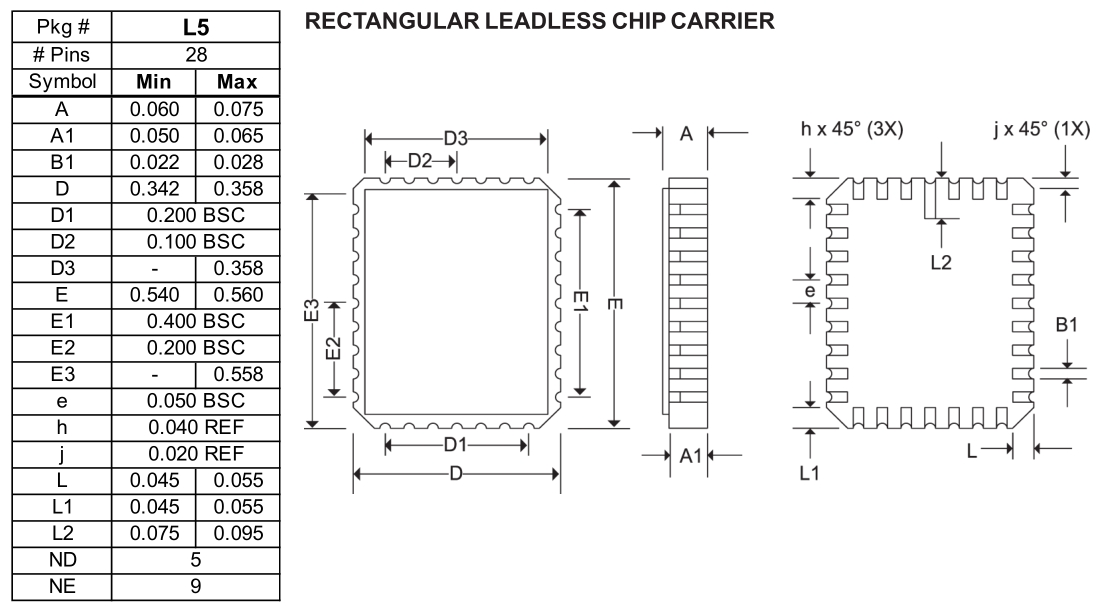 Leaded Chip Carrier - 28 pins - 0.350x0.550 mil